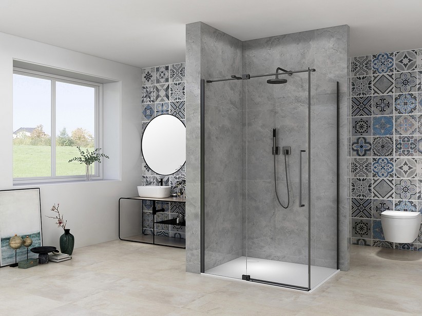 MANTRA 2-seitige Duschkabine Schwingtür 100 x Festwand 70 H200 Zum Einbau in Ecken beidseitig nutzbar