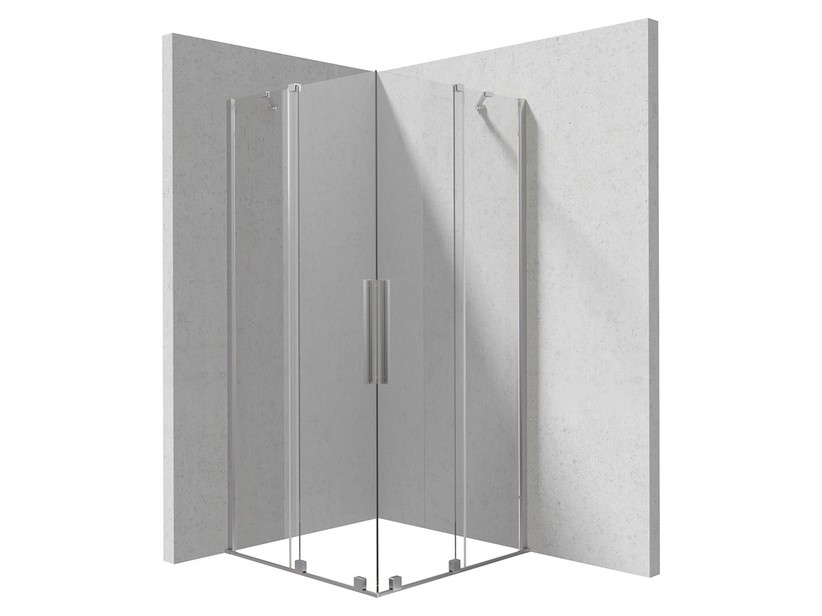 Eckige Schiebeduschkabine Prizma 90x140 cm H195 Erw 88/90-138/140 6 mm Glas transp. Profile in gebürsteter Edelstahloptik