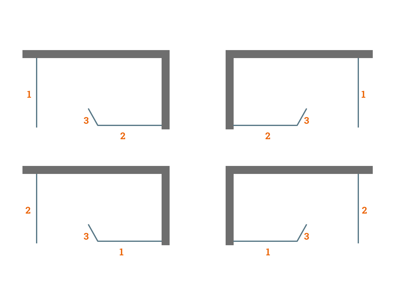 Es ist möglich die Walk-in Dusche Fantasy2 in den folgenden Kombinationen zu installieren: