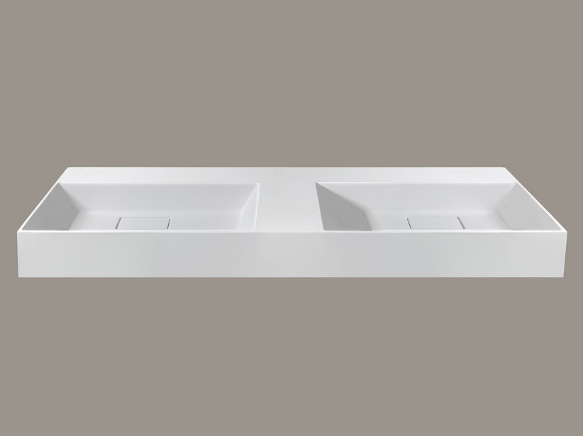 Waschbecken Unitop QUADRO mit Doppelbecken cm 140x48 aus Harz Weiß matt