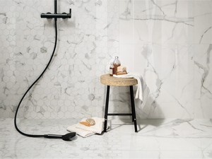 Erhältlich in zwei Farben: White und Gold aus dem Format 60x60 und 60x120.